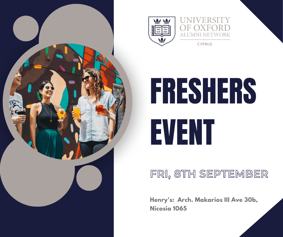 The OUSC would like to invite any alumni to our annual Freshers’ event in Cyprus which will be held at 7 pm on Friday 16th of September 2022, at Moat Cafe (Eleftheria’s Square) in Nicosia.
